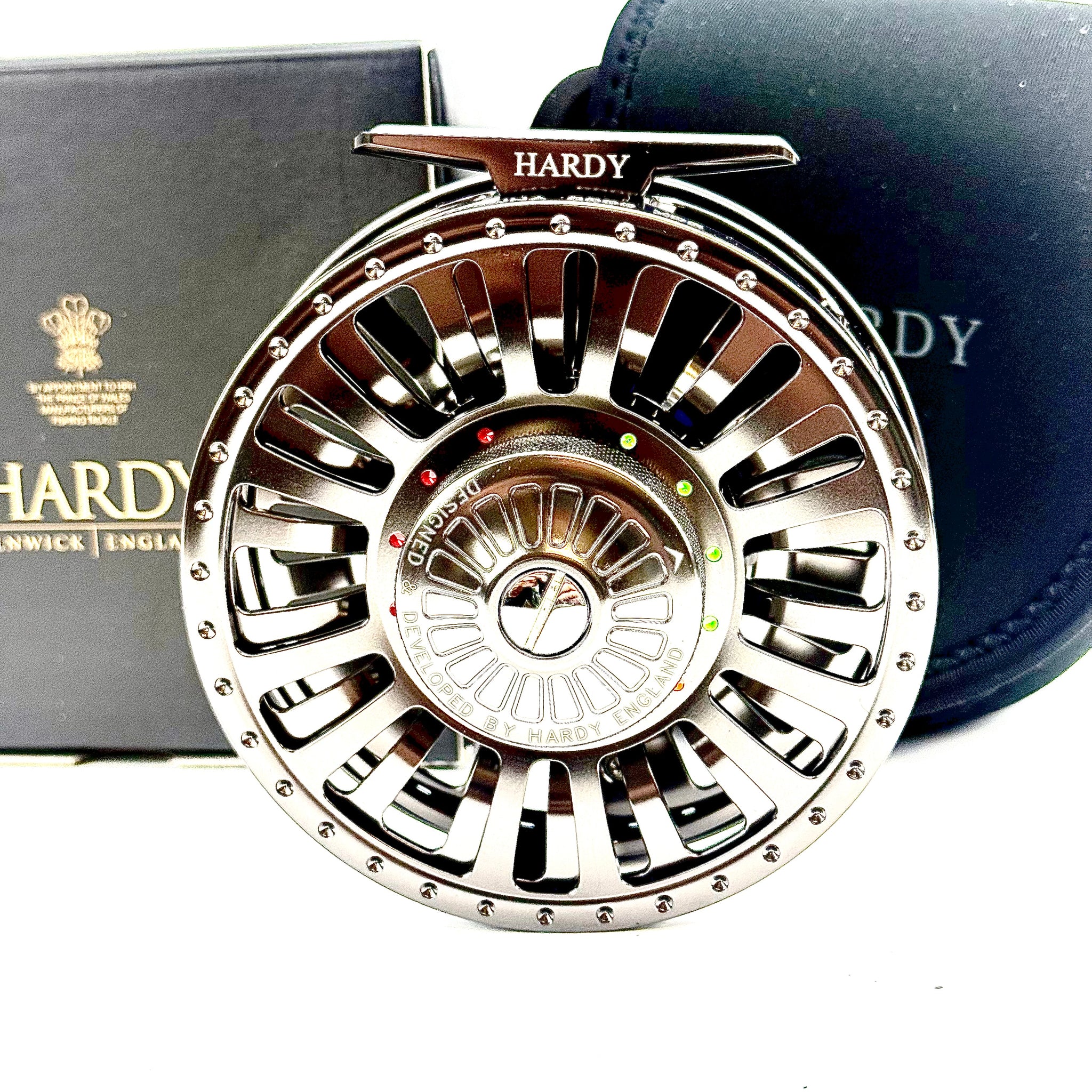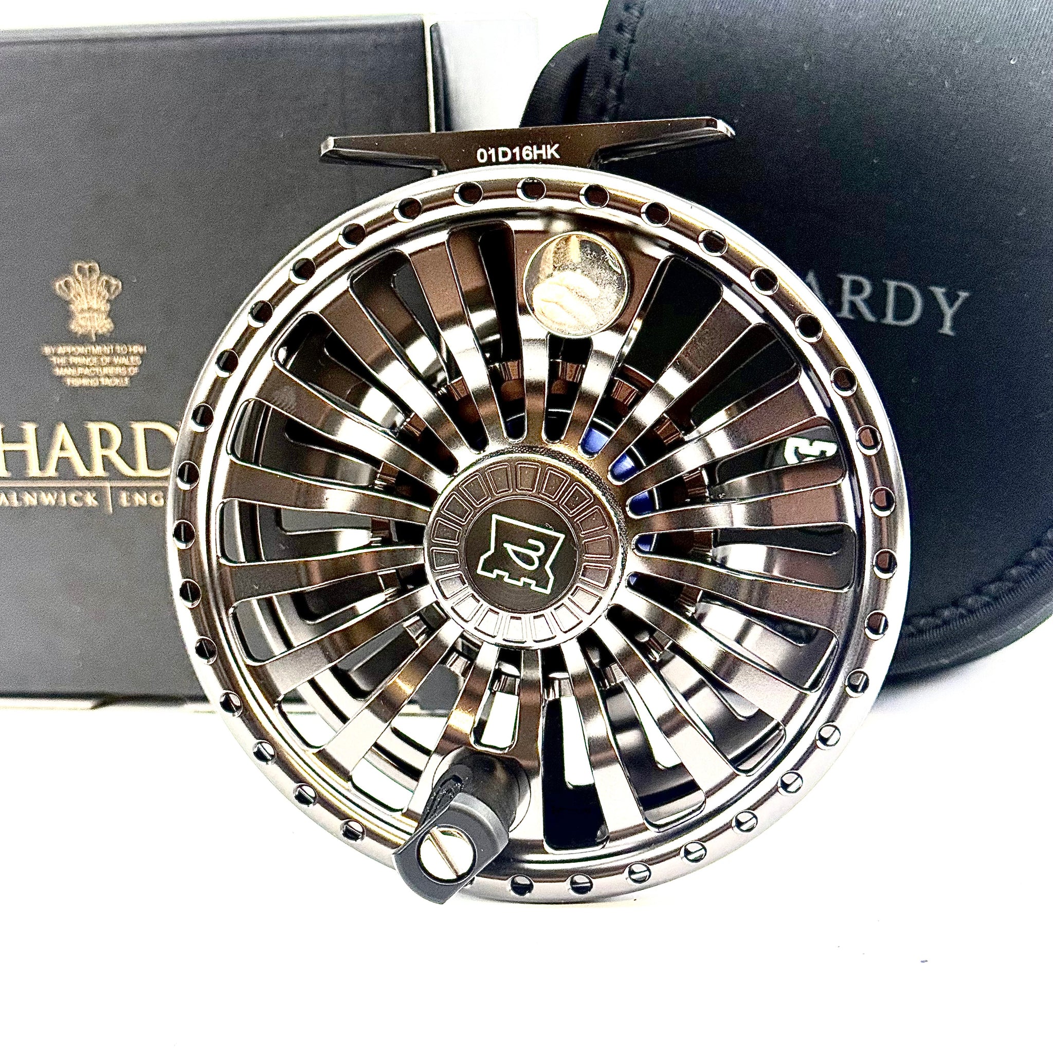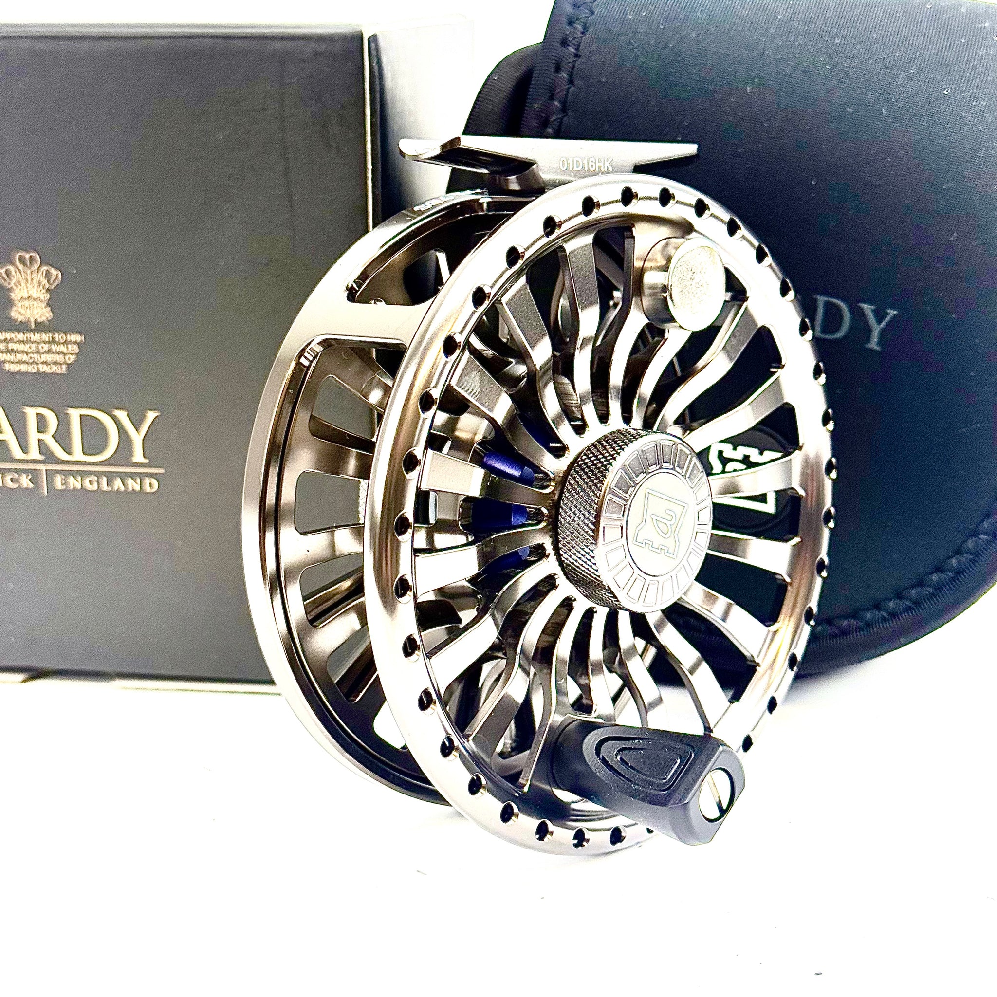 A New Hardy 8000 Fortuna Salt Water fly reel in box pouch and paperwork .